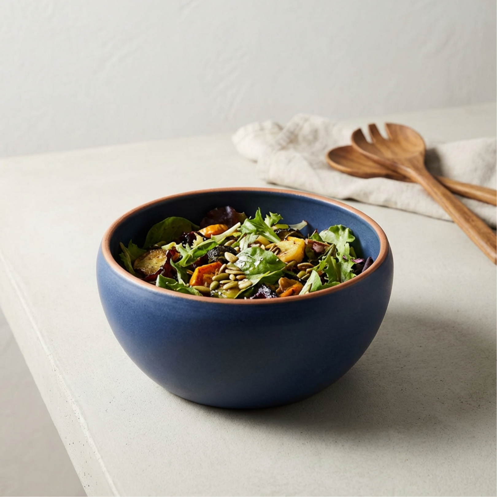 نقدم لكم وعاء التقديم الكبير | أزرق مطفي ، مزيج من العملية والدقة الجمالية. مصنوع من الخزف الحجري المتين، يوفر هذا الوعاء مساحة واسعة لإبداعاتكم الطهوية، من السلطات الدسمة إلى الأطباق الجانبية الشهية.